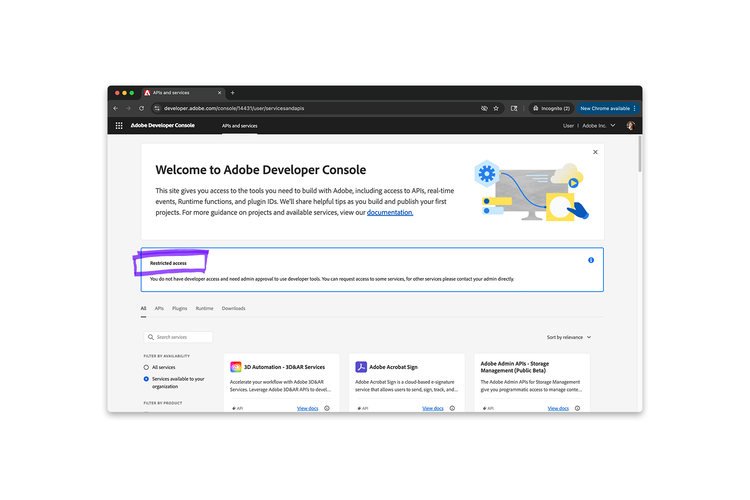 If you’re having trouble accessing developers.adobe.com/console, you can still download SDKs and documentation for Creative Cloud products. Read on for a workaround, as well as how to get access.
